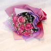 ピンク色のエイトローズとカスミ草のブーケです。